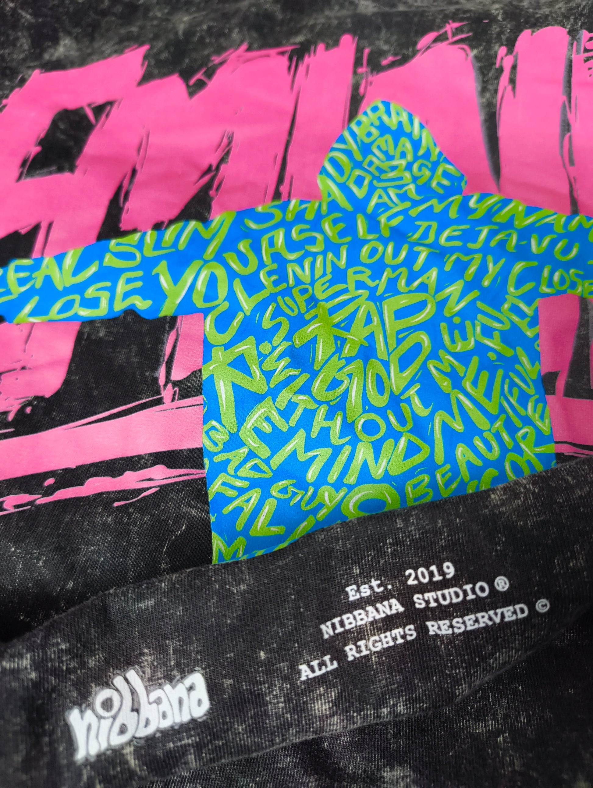 Channel the raw energy and legendary spirit of Eminem with Nibbana Studio’s Eminem Oversized T-Shirt. Designed for fans who live and breathe real music, this acid-wash masterpiece features bold "EMINEM" lettering across the chest, paired with a striking silhouette of Eminem filled with the titles of his greatest hits — a tribute to his unmatched legacy.